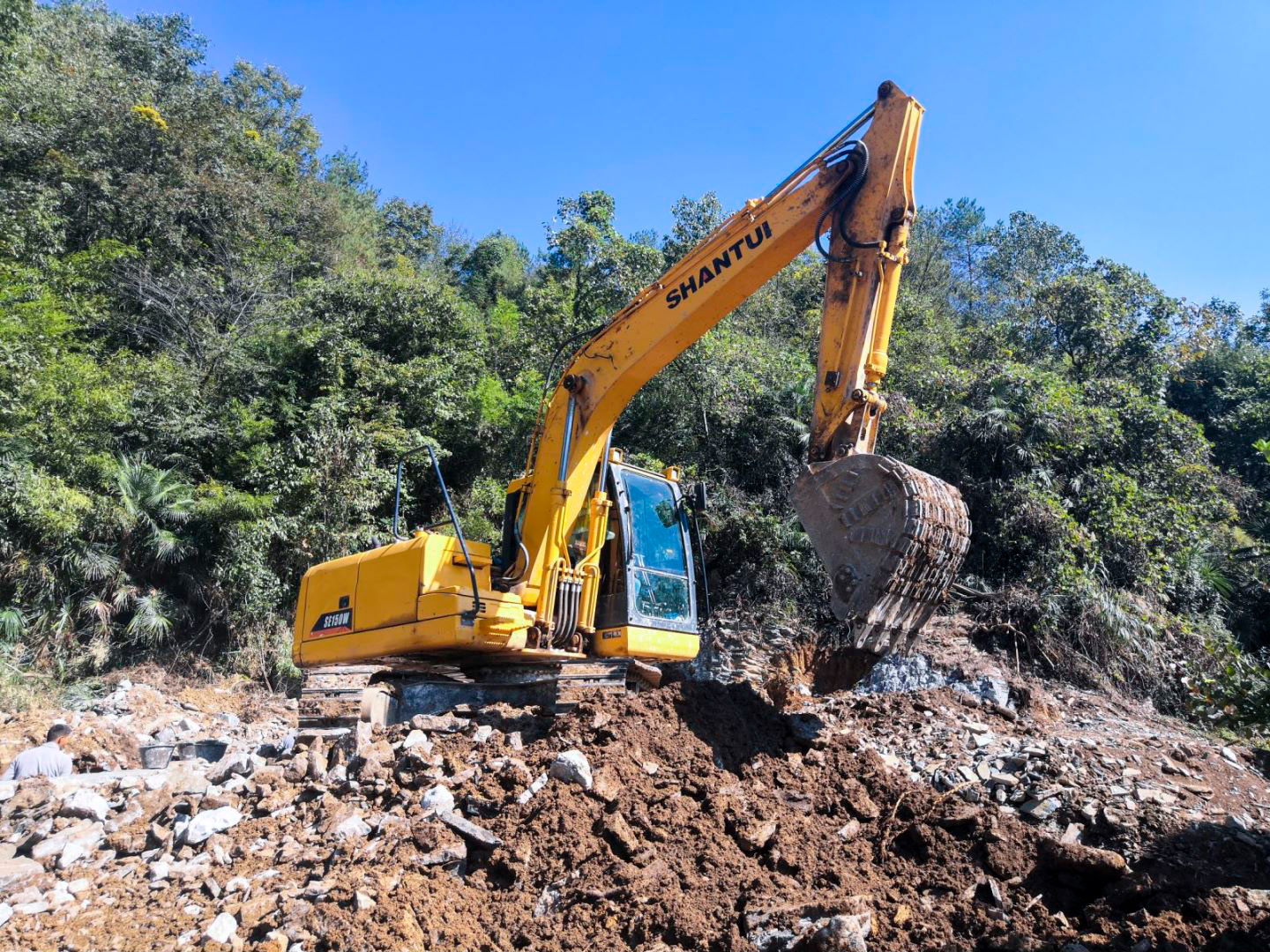 The Shantui SE150 Excavator is a compact and efficient machine, perfect for a variety of mid-sized construction, landscaping, and utility tasks. Equipped with a Cummins QSF3.8T engine delivering 86 kW/2200 rpm, the SE150 offers a blend of power and agility, making it ideal for projects where precision and efficiency are paramount. Its reinforced boom and arm are designed for durability, ensuring the SE150 can handle demanding jobs while maintaining reliable performance. The advanced hydraulic system allows for smooth, precise control, enabling detailed excavation, trenching, and material handling.